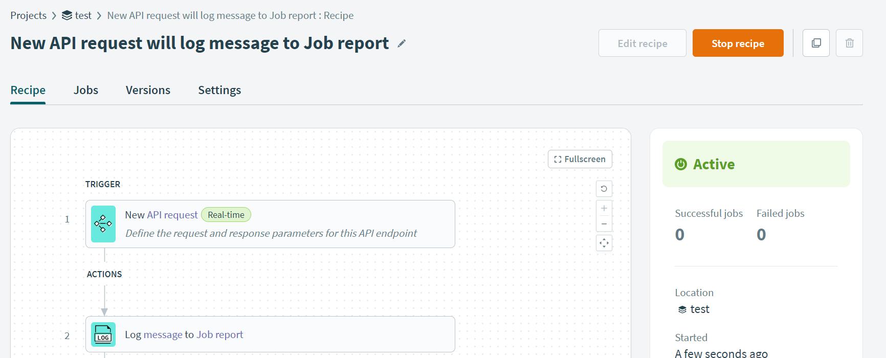 Click on ‘start recipe’ it will wait for the request as shown in the below image.