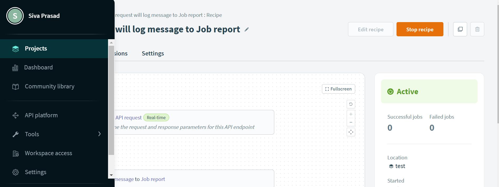 Select the recipe name which is shown below, after creating the access profile. Copy the URL by clicking on the recipe name (E.g., test). Now the recipe has been secured by OAuth 2.0 Policy, and it is available for testing.