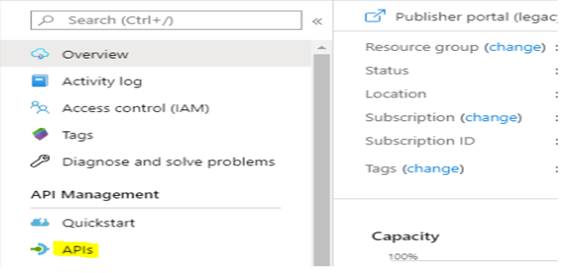 - Now let’s add our Azure web App to APIM. In the left panel we’ll find the APIs section. You can refer to Fig.6.