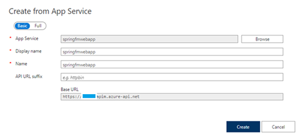 - Next, in ‘Add API,’ select Create from Azure resource. Select your App Service with the Browse option and click on Create. It will add our API to APIM. You can refer to Fig.7.