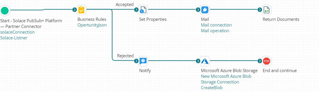 This approach involves sending Salesforce objects to a Solace PubSub+ queue and subsequently consuming them as needed. Once the messages are consumed, successful records are sent via email, while unsuccessful records are stored in a database based on a condition.