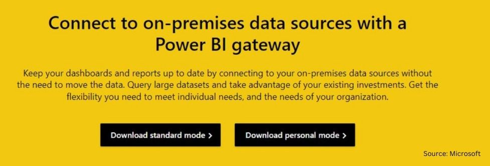 Step 1: Visit the following link to download the on-premises gateway; it displays two types. Such as Standard Mode and Personal Mode. Here, standard mode is being used. https://powerbi.microsoft.com/en-us/gateway/