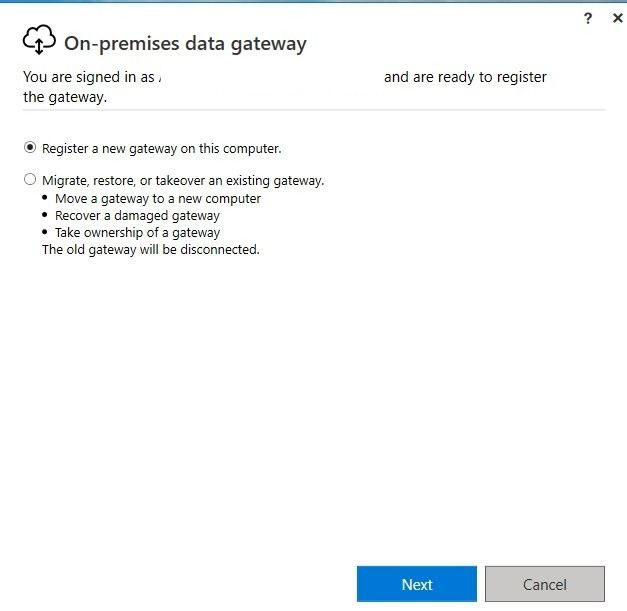 Step 7: A new window with two options will open after you sign in. Choose On this computer, register a new gateway. Click Next