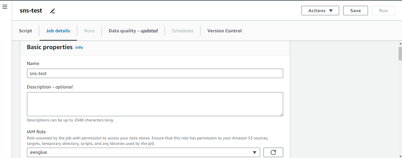Create a demo glue job to setup the sending SNS notifications to teams when it’s failing