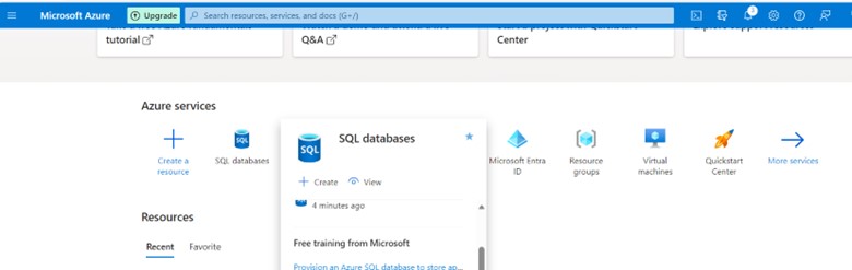 - In the Azure portal, navigate to “Create a Resource” and search for “SQL Database.”