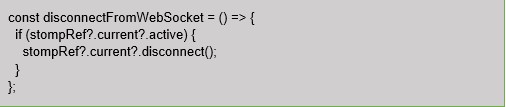 Clean up the WebSocket connection properly when it is no longer needed. The disconnectFromWebSocket function unsubscribes from topics and disconnects the WebSocket.
