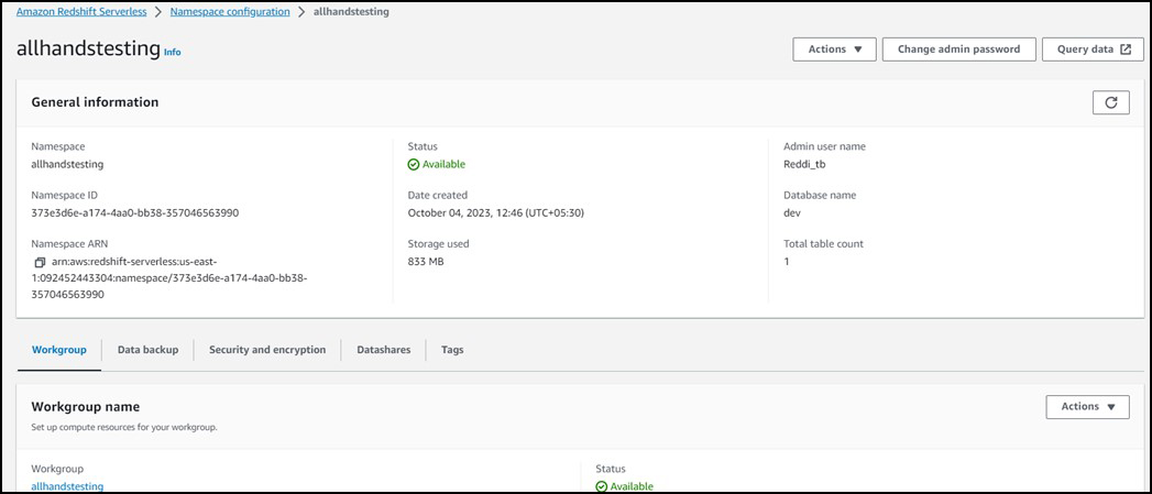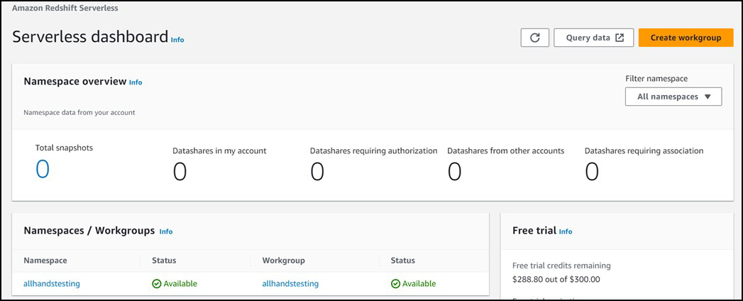 After successful creation, you will find your workgroup name under Namespaces/Workgroups.
