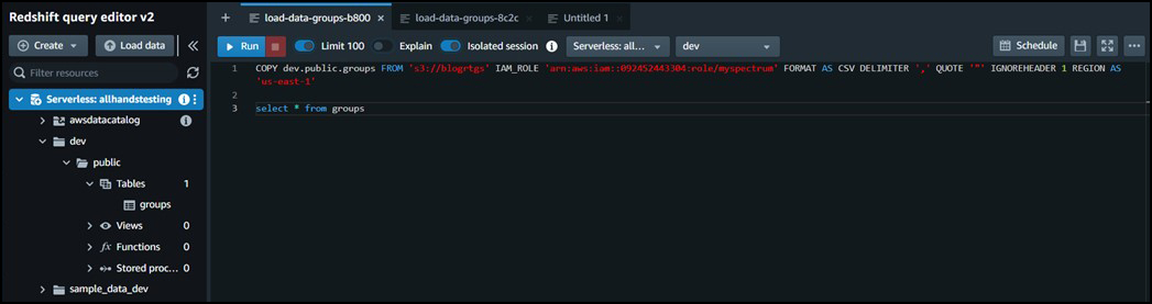 If you have previously loaded tables, you can go with that, or else you can create a database, create tables and schemas, and load the data from a local file or S3 bucket.