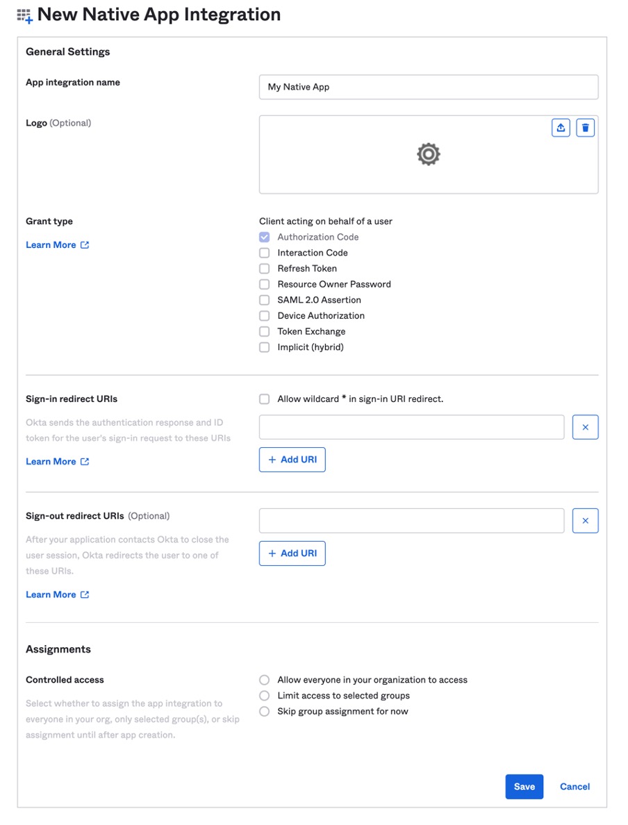 Click on the ‘Next’ button and it will be redirected to the new app integration page add ‘Sign-In’ and ‘Sign-Out’, redirect URLs, customize your configuration as per requirement and click on the save button to register the new React native app in the OKTA dashboard.