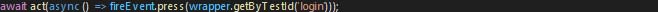 This is because the login button is hitting an API, and it is an asynchronous task. We must wait for it to get our desired result. For this, we need to use another function called ‘act’ from the testing library.