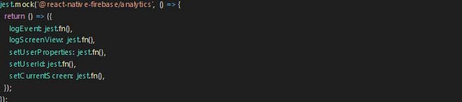 Let’s understand the mocking with an example. Say we have added Google Analytics in our project and are trying to write a test case, it will give an error as logEvent is not defined. The reason behind this happening is the fact that the test environment is not the same as the environment where we run the app. Hence test environment will not go and resolve the dependency, and it will ask you to do it. So, to resolve logEvent and other analytics functions errors, we will mock the analytics library as follows: