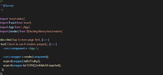 In the above screen, we use the render function from react-native-testing-library and check if the wrapper has a truthy value. If the page doesn’t get rendered properly, then this test case will fail.