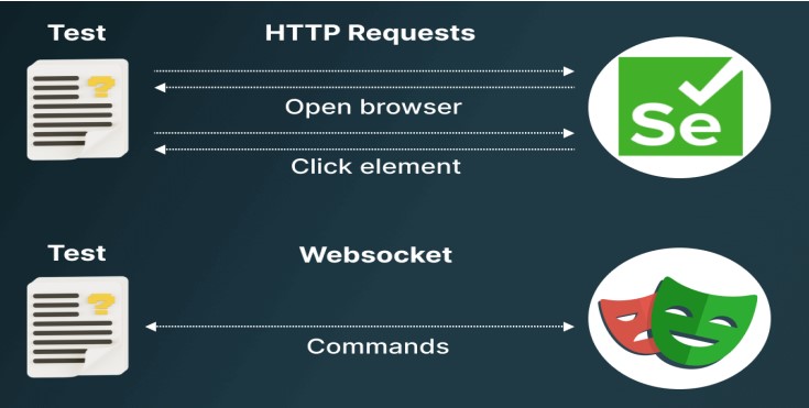 - In discrepancy, Selenium navigates through the HTTP connection protocol. Under this system, the Selenium code in all its glory penned by us (the customer) transforms into JSON. Generated JSON is sent to the driver (server) through HTTP protocol.