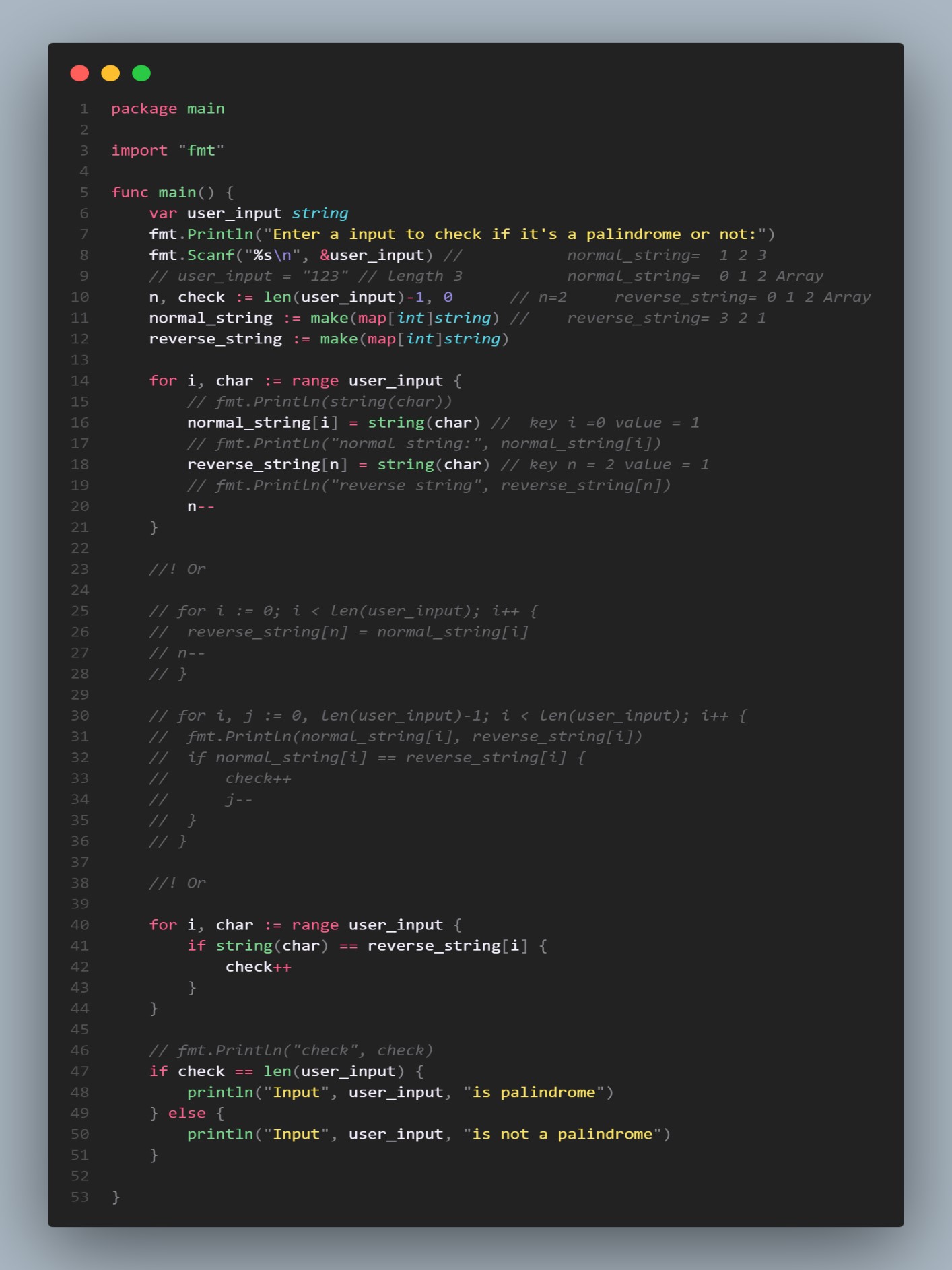 Keywords: GO, GOLang, .go, Programs, Palindrome, Reverse a given string.