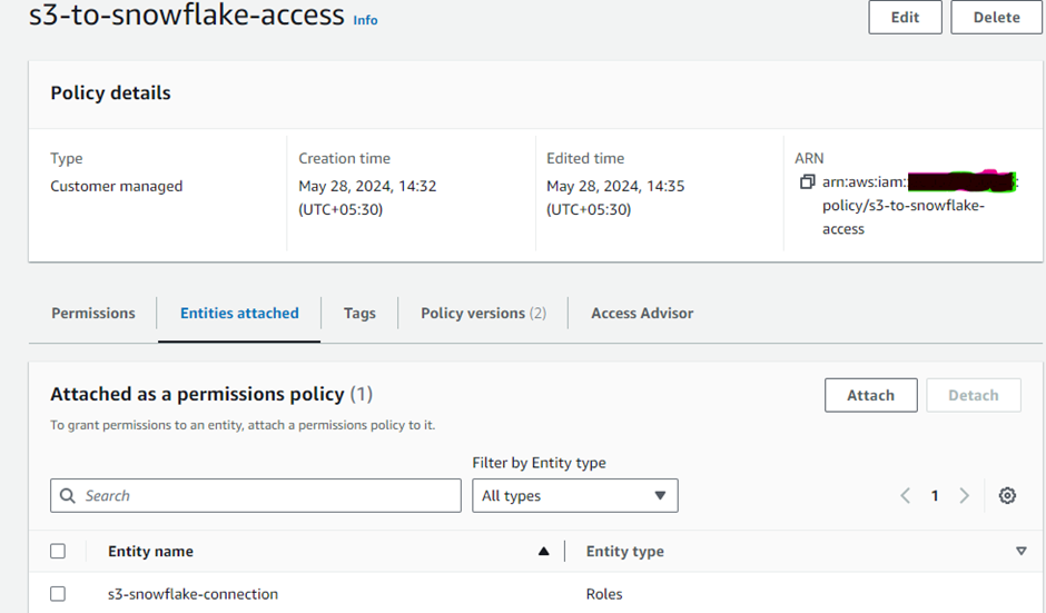 | AWS IAM policy | S3-snowflake-access | $0 (No cost for creating roles and policies) |