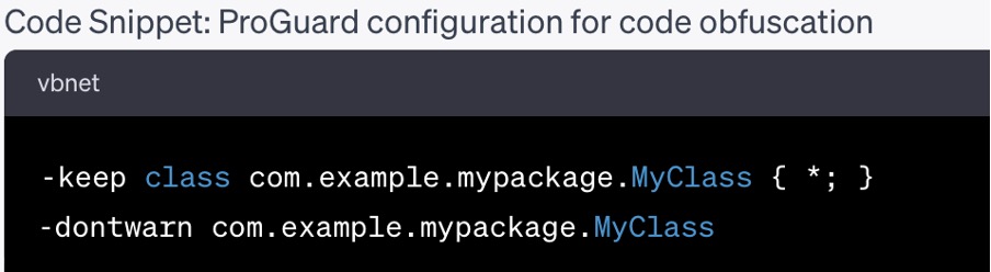 - ProGuard: Employ ProGuard (https://www.guardsquare.com/proguard ) to obfuscate and shrink your app’s code, making it more resistant to reverse engineering