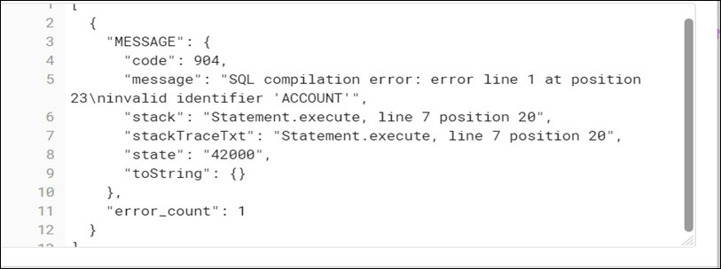 - Using JavaScript Try/Catch block, we can implement error handling in Snowflake Stored Procedures.