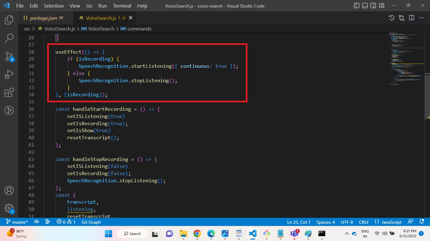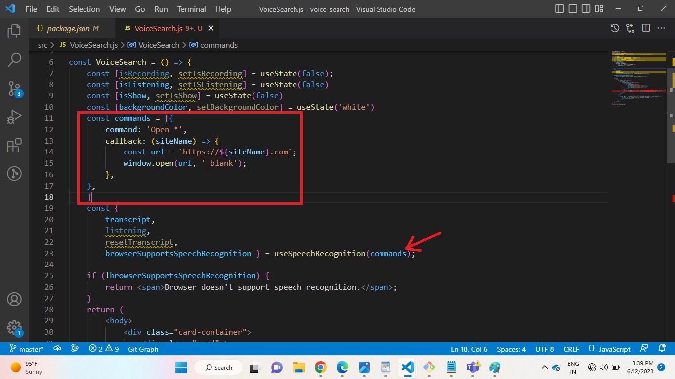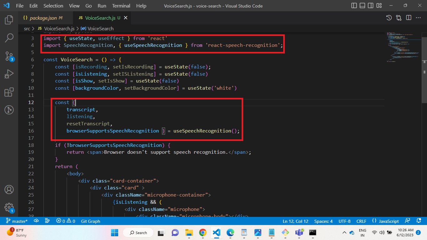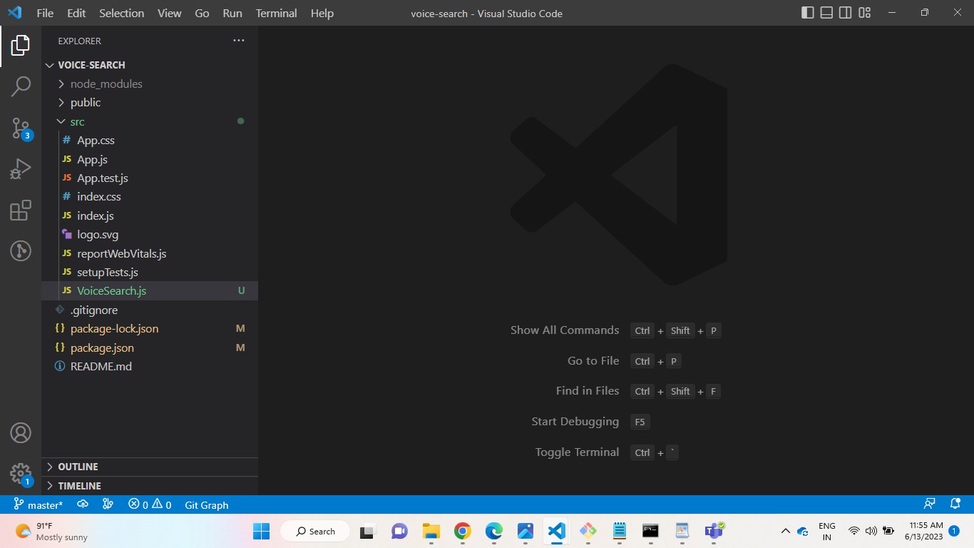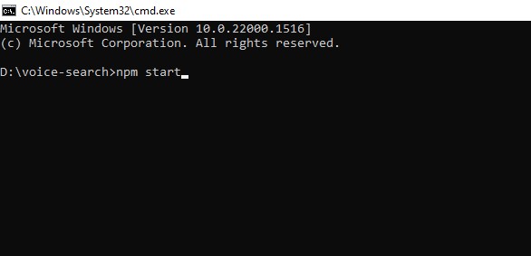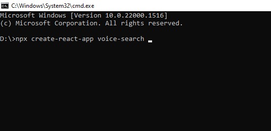 - The command npx create-react-app voice-search facilitates the creation of a React application named ‘voice-search’ (you can choose a different name if desired).