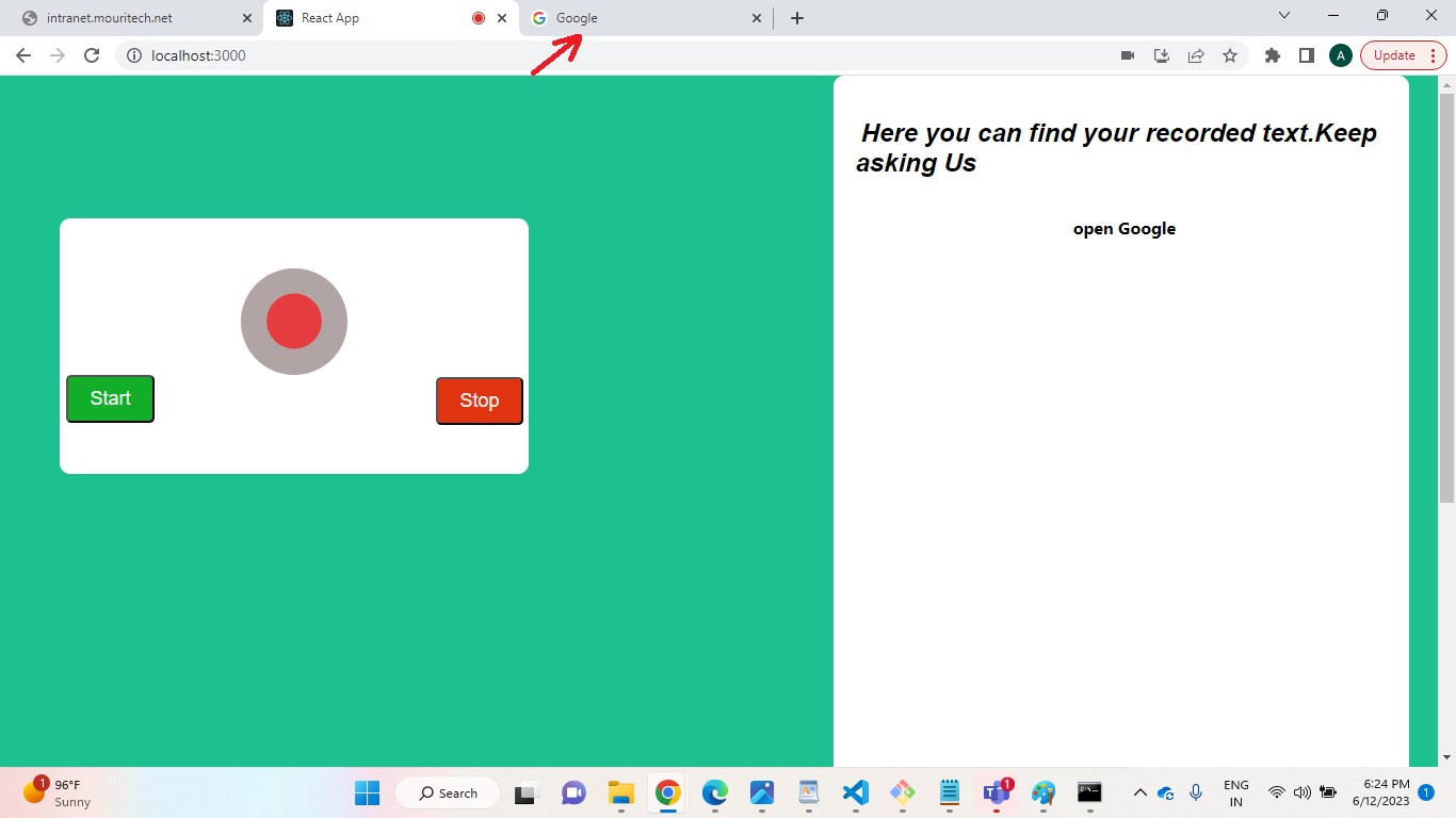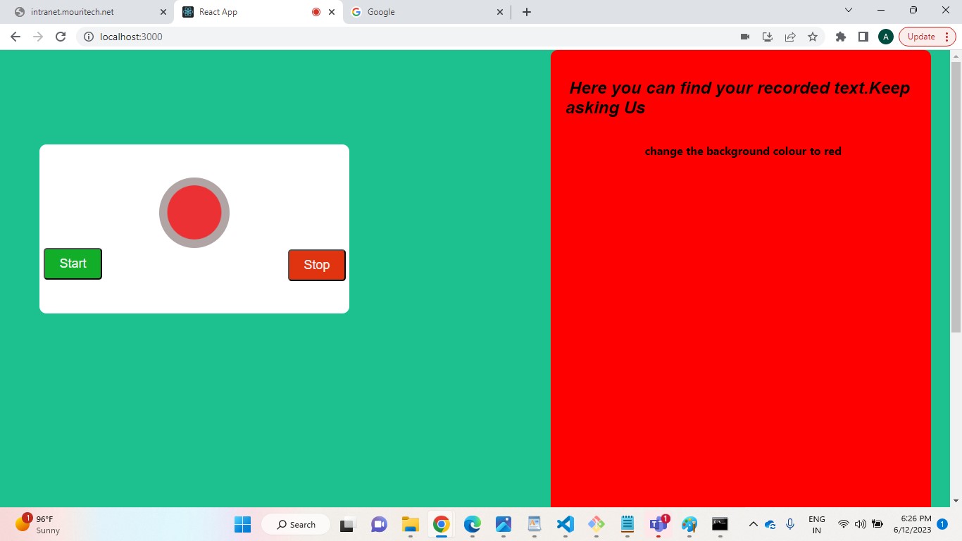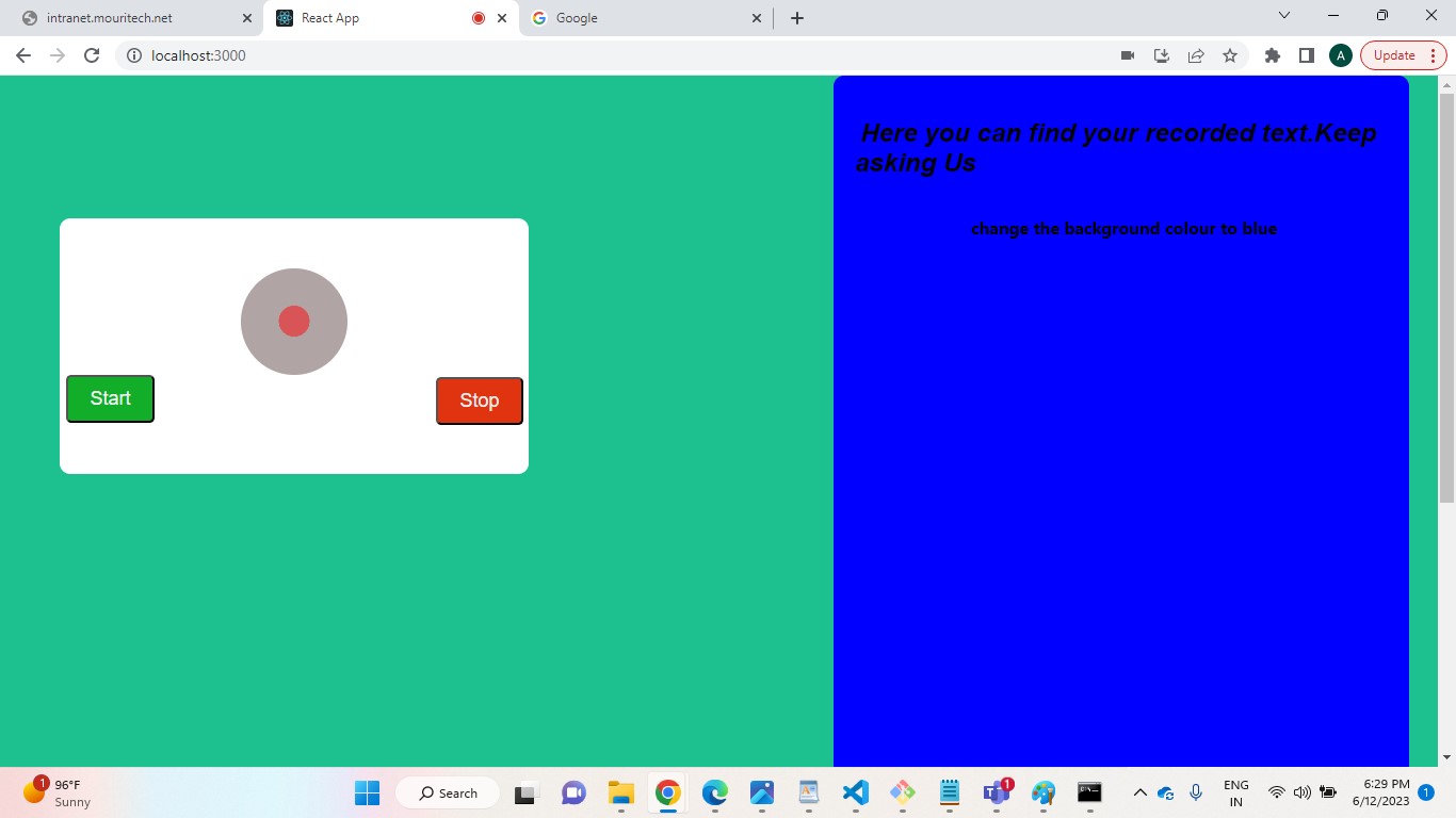 - Tools and Technology: VS Code, React JS, react-speech recognition.