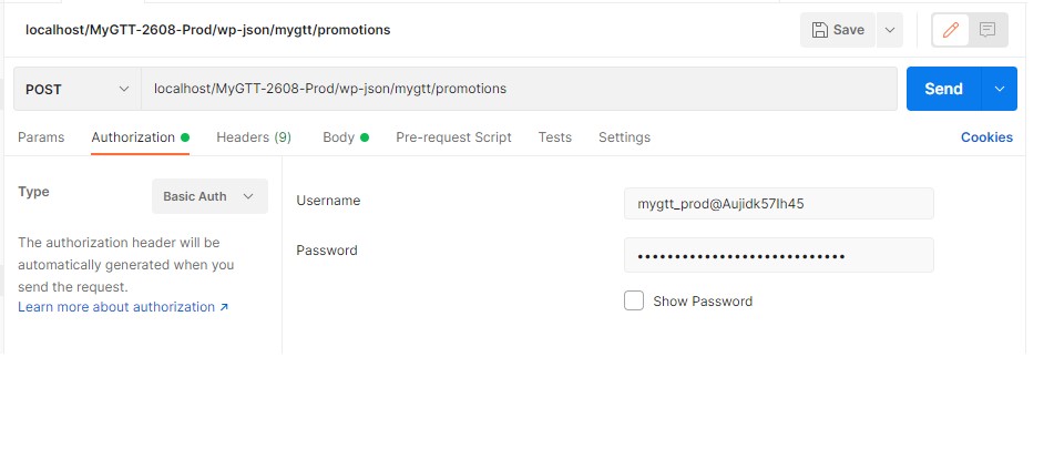 After updating the authentication the Headers tab will now include a header field for the encoded username/password string.