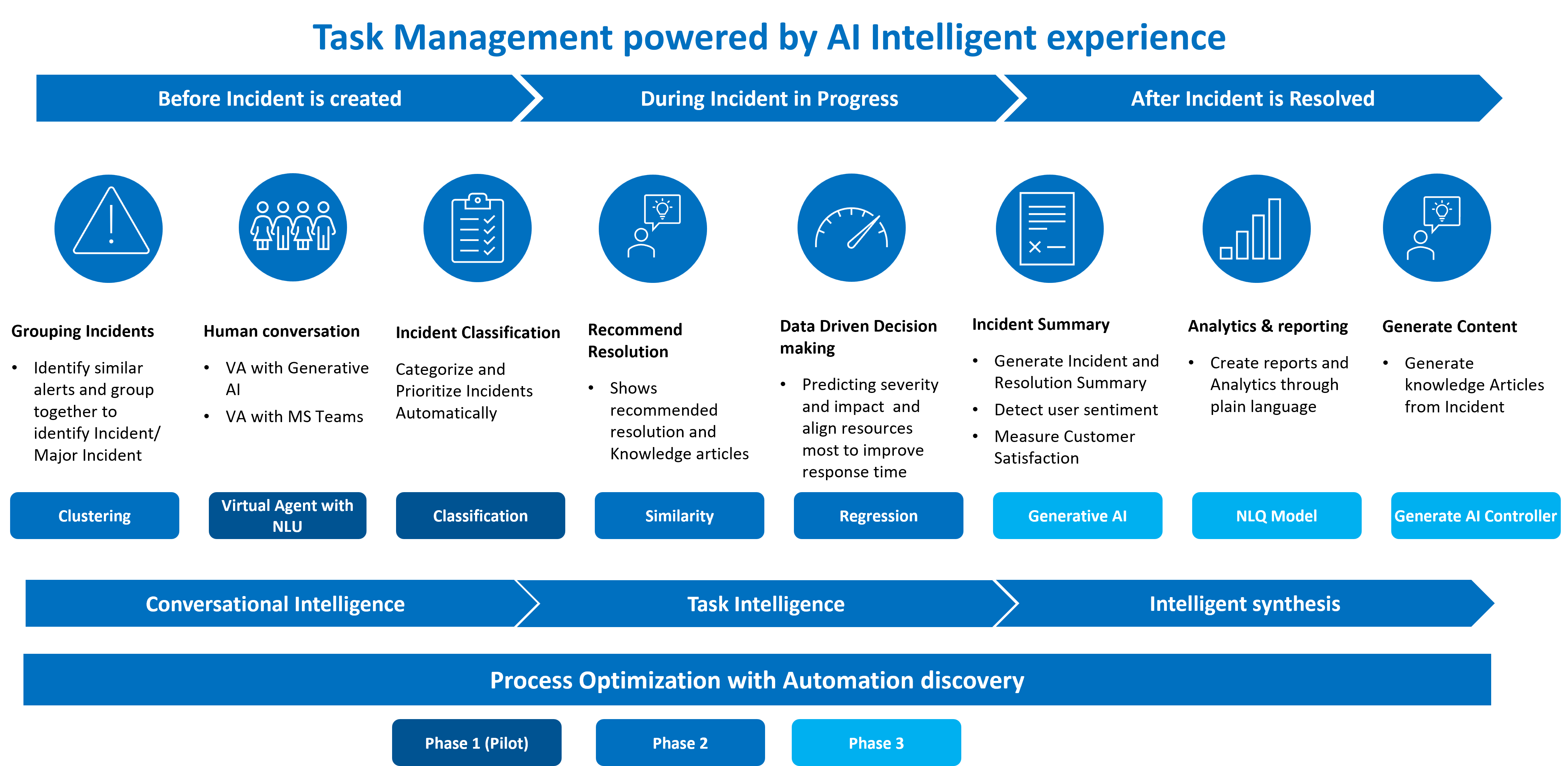 Gradual Implementation of AI Solutions in Incident Management: Imagine an IT Service Operation where tickets vanish at lightning speed, self-help thrives, and every interaction feels like a personalized concierge experience. Let’s dive into how these AI wonders can transform your service game as example for Incident Management: