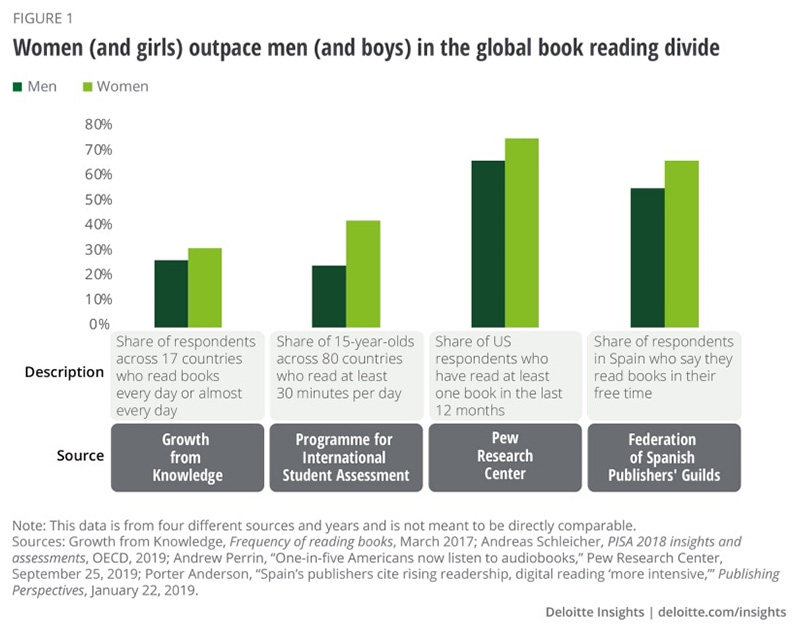Mainly due to the COVID-19 pandemic, people around the world are reading more print books, e-books, and audiobooks than ever before. However, men are seemingly less involved, compared to women. Deloitte Global predicts this trend to continue.